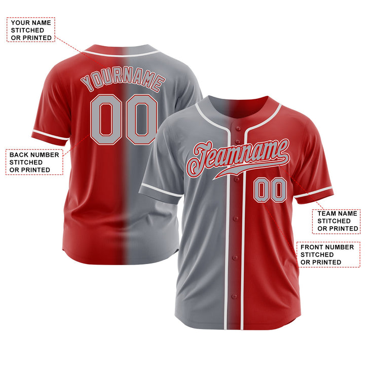 Custom Red Gray-White Gradient Fashion Classic Style Authentic Sports Baseball Jersey