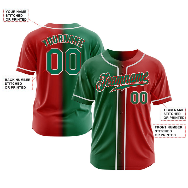 Custom Red Kelly Green-White Gradient Fashion Classic Style Authentic Sports Baseball Jersey