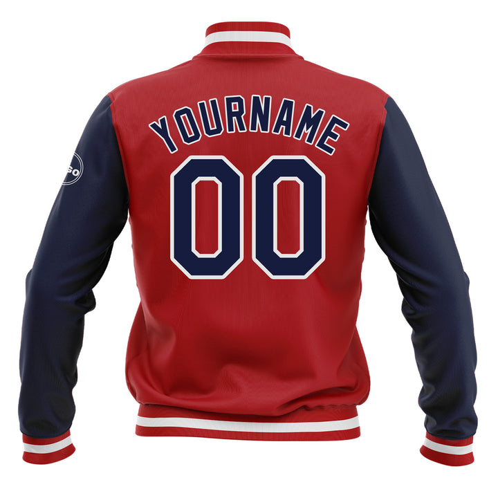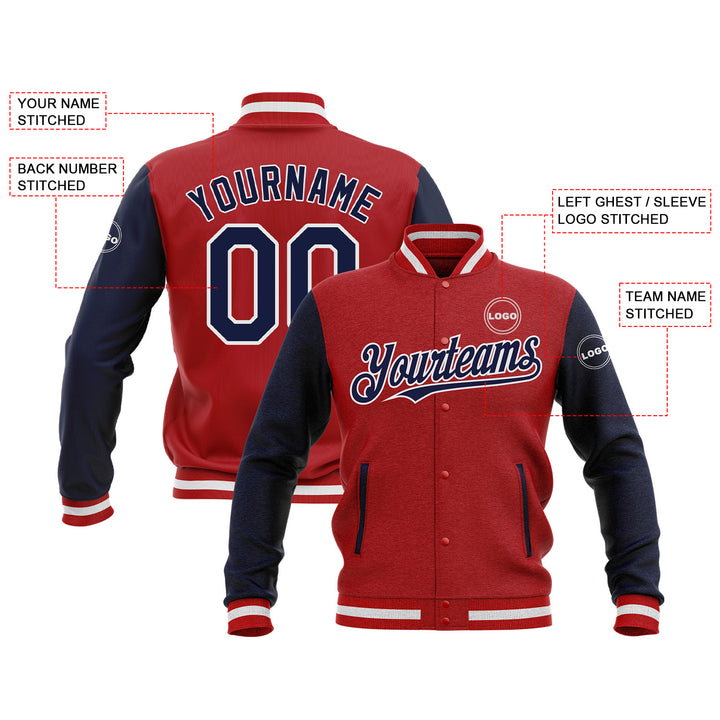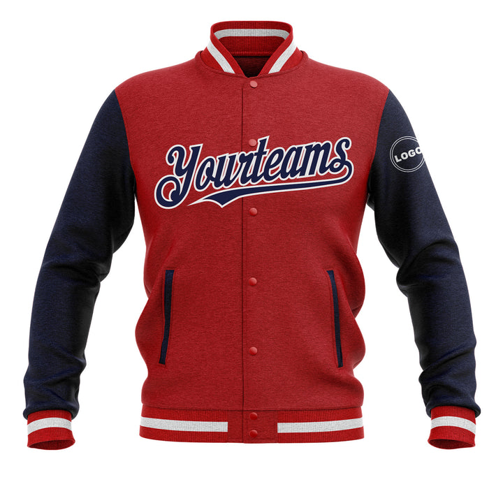 Custom Red Navy-White Two Tone Bomber Varsity Letterman Embroidered Jacket