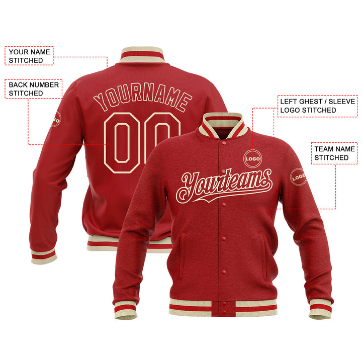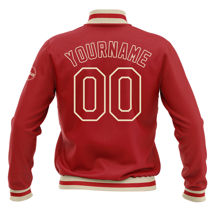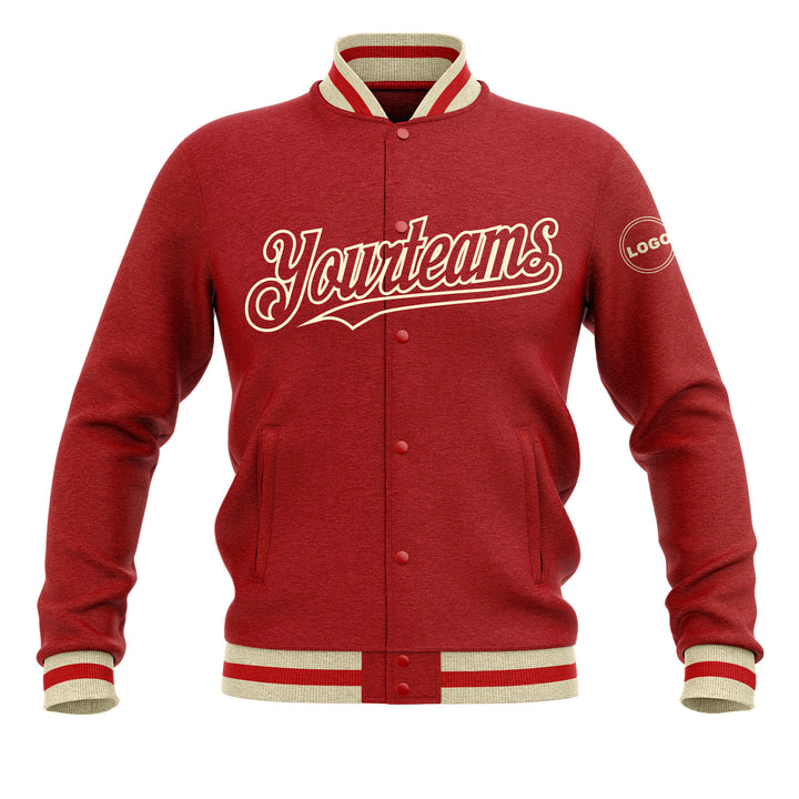 Custom Red Red-Cream Bomber Varsity Letterman Embroidered Jacket