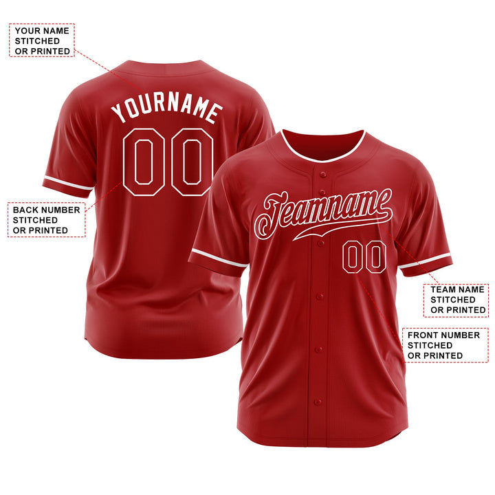Custom Red Red-White Classic Style Authentic Sports Baseball Jersey