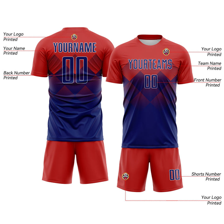 Custom Red Royal-White Classic Uniform Training Sets Soccer Jersey For Adults/Kids