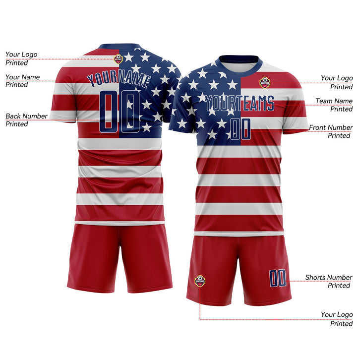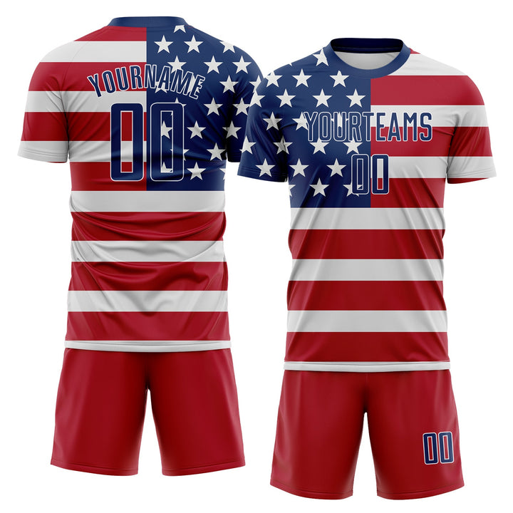 Custom Red Royal-White American Flag Classic Uniform Training Sets Soccer Jersey For Adults/Kids