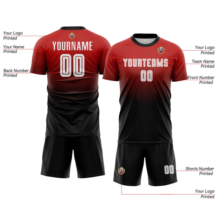 Custom Red White-Black Fade Fashion Classic Uniform Training Sets Soccer Jersey For Adults/Kids