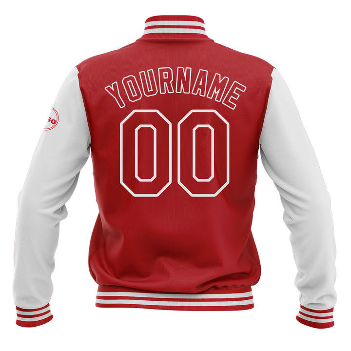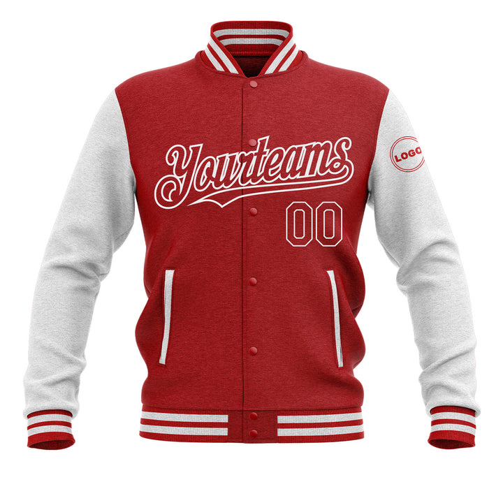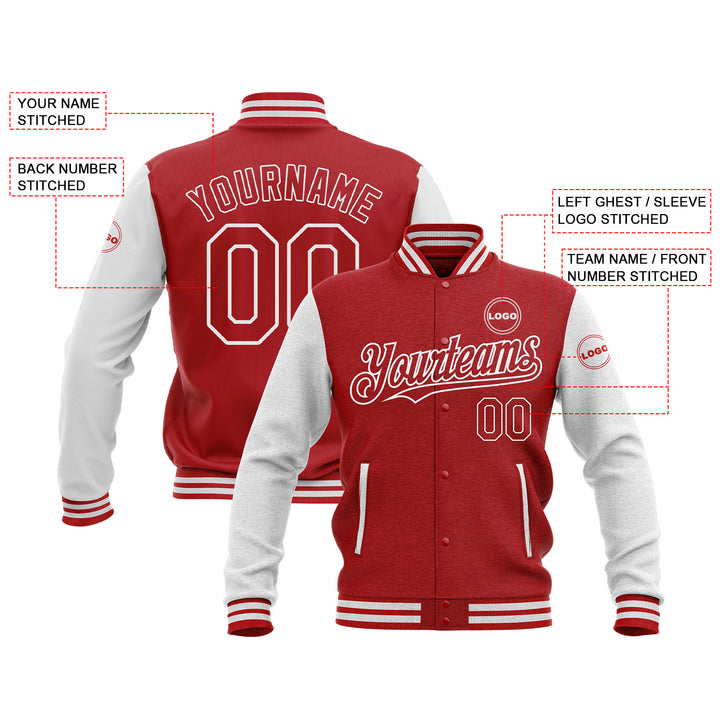 Custom Red White Classic Style Two Tone Bomber Varsity Letterman Embroidered Jacket