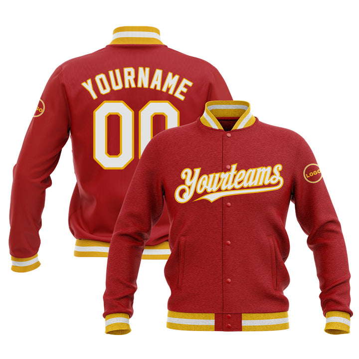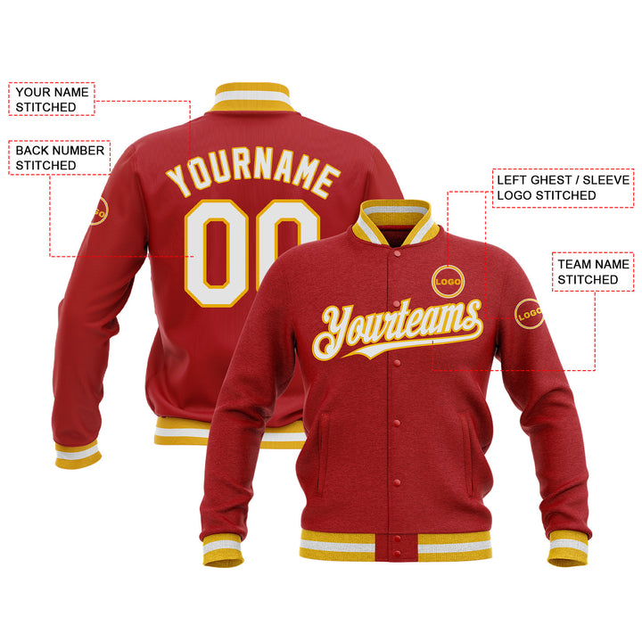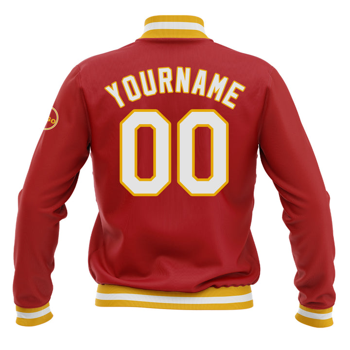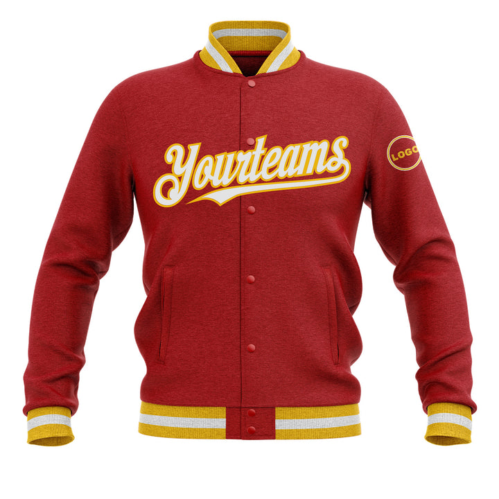 Custom Red White-Gold Bomber Varsity Letterman Embroidered Jacket