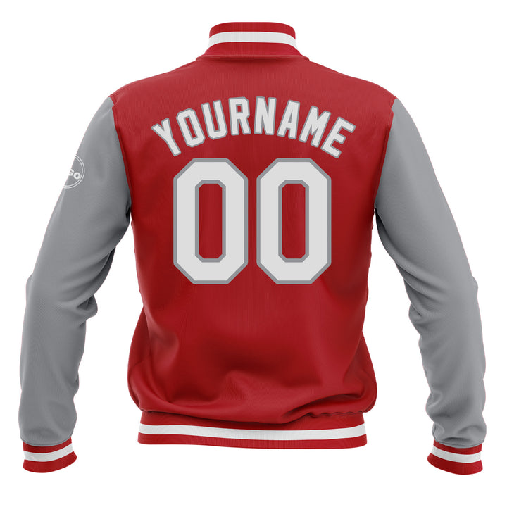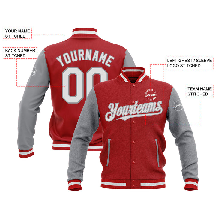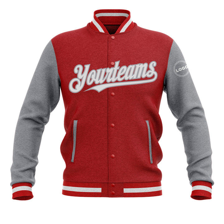 Custom Red White-Gray Two Tone Bomber Varsity Letterman Embroidered Jacket