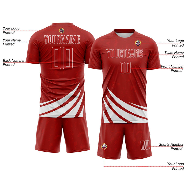 Custom Red White Wind Shapes Classic Uniform Training Sets Soccer Jersey For Adults/Kids