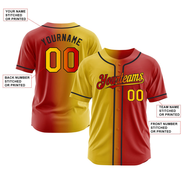 Custom Red Yellow-Black Gradient Fashion Classic Style Authentic Sports Baseball Jersey