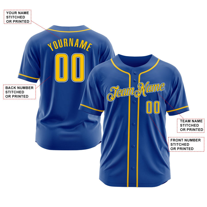 Custom Royal Gold-White Classic Style Authentic Sports Baseball Jersey