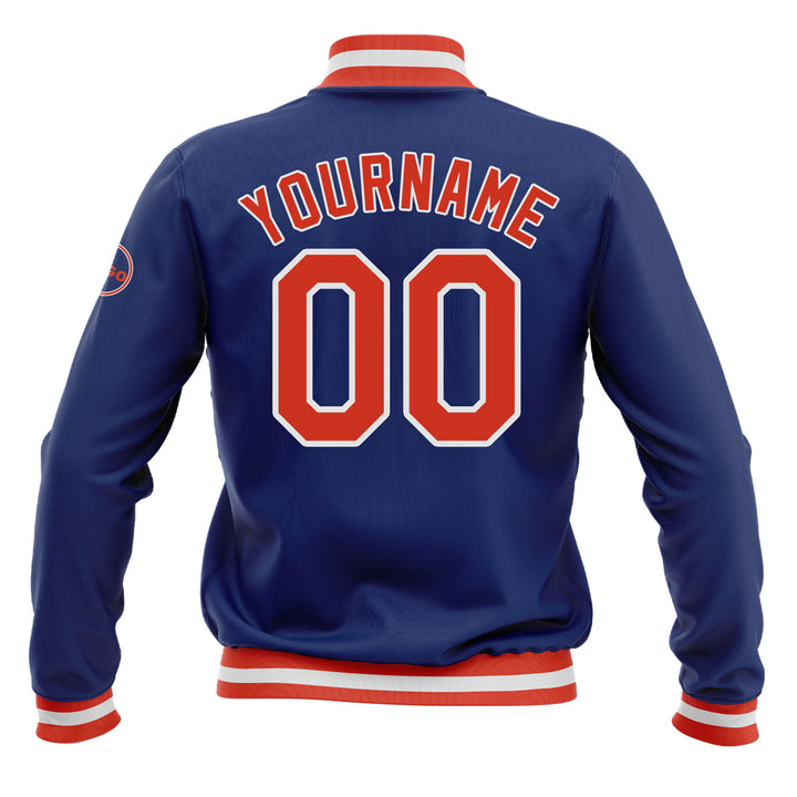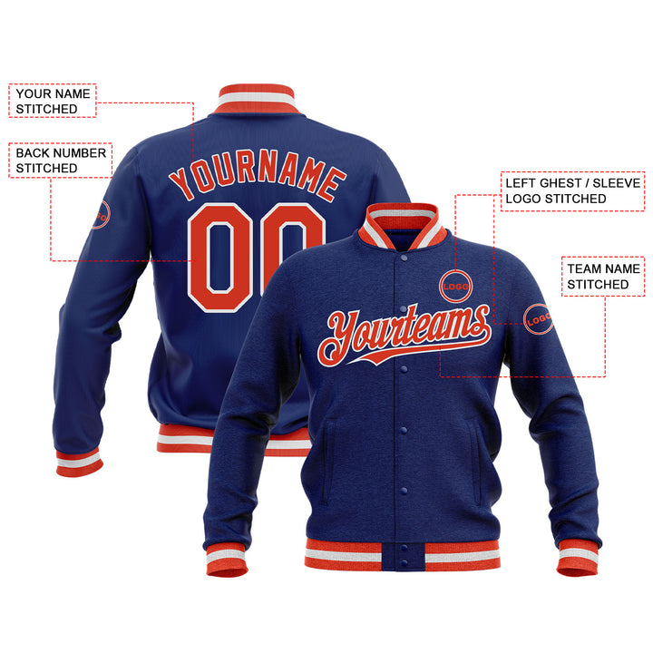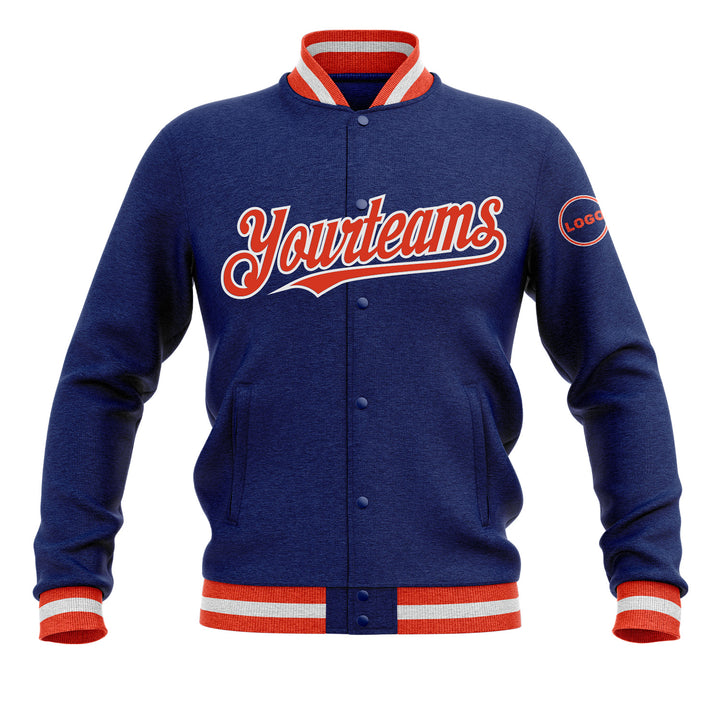 Custom Royal Orange-White Bomber Varsity Letterman Embroidered Jacket