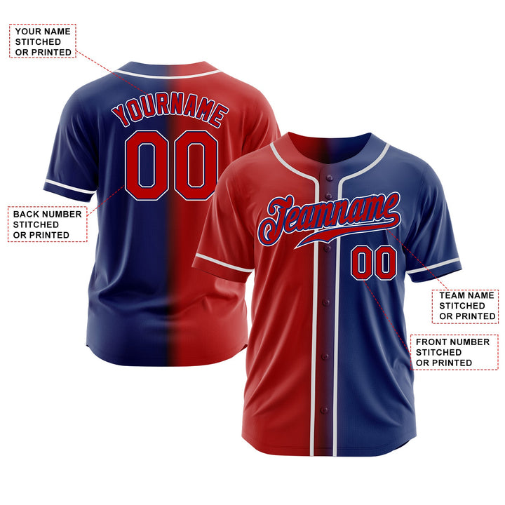 Custom Royal Red-White Gradient Fashion Classic Style Authentic Sports Baseball Jersey