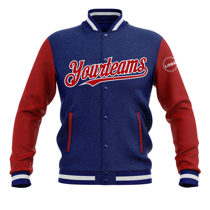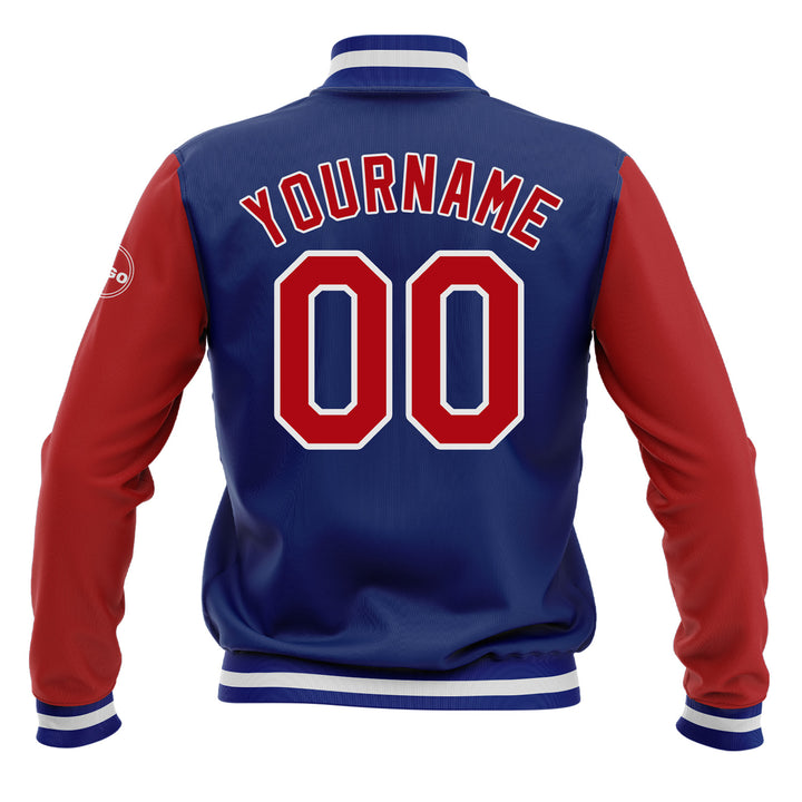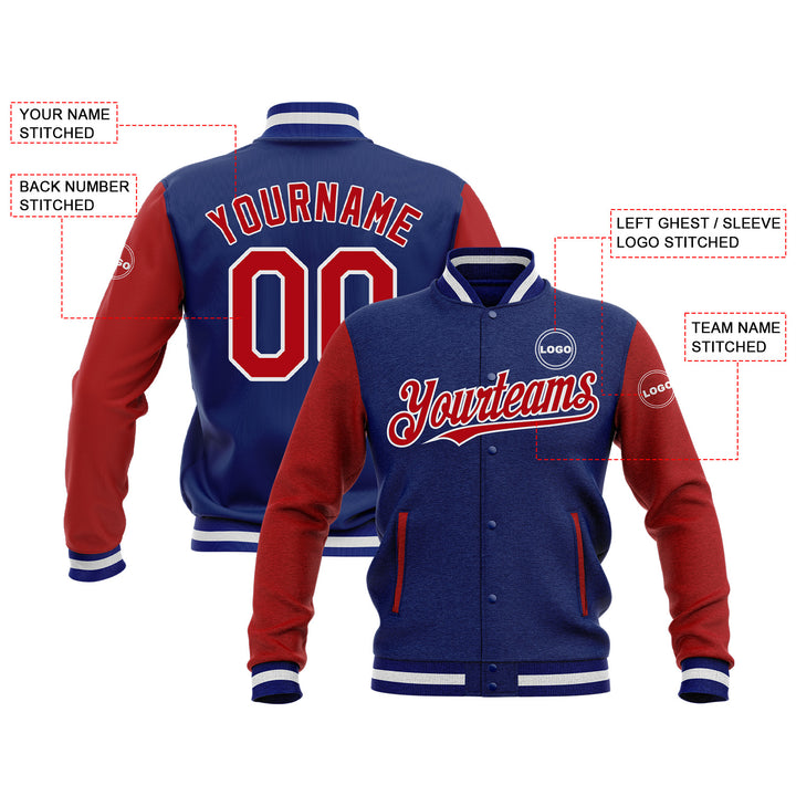 Custom Royal Red-White Two Tone Bomber Varsity Letterman Embroidered Jacket
