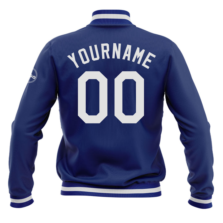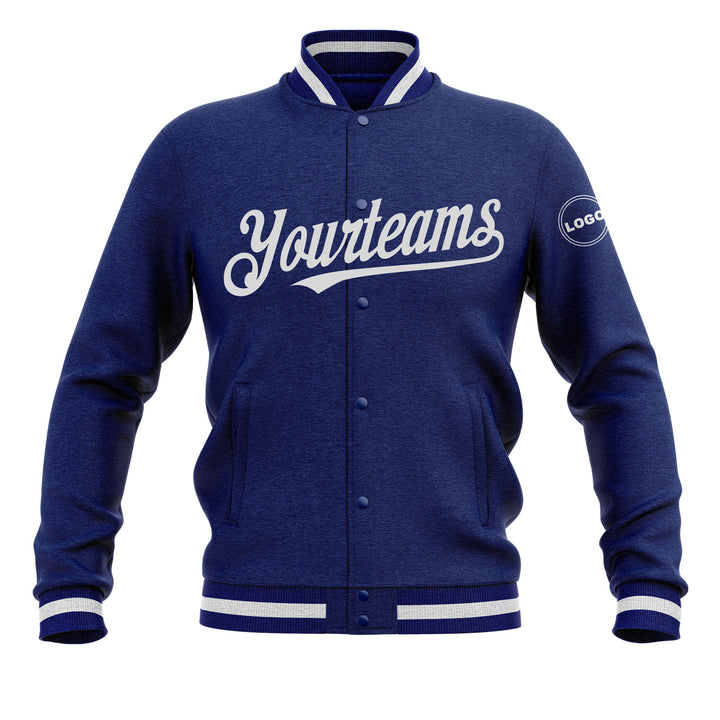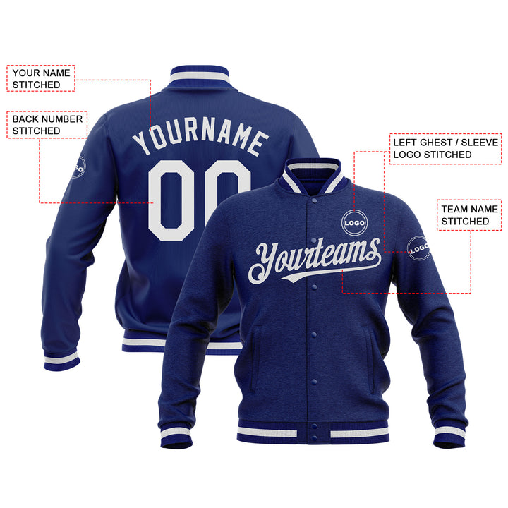 Custom Royal White Bomber Varsity Letterman Embroidered Jacket