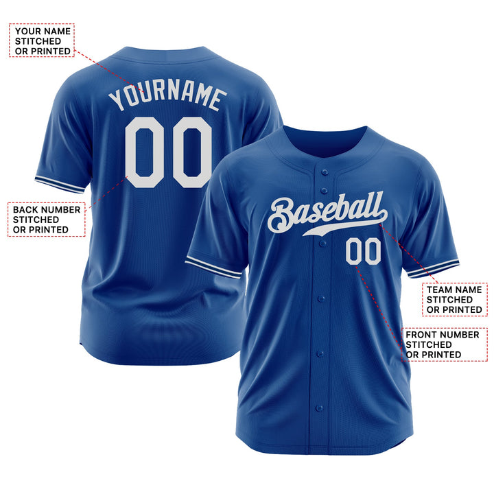 Custom Royal White Classic Style Authentic Sports Baseball Jersey