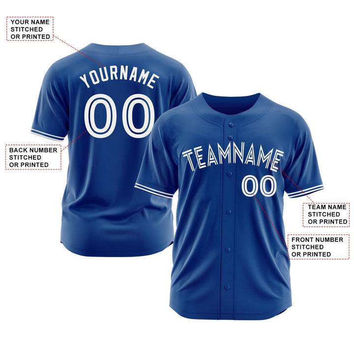 Custom Royal White Classic Style Authentic Sports Baseball Jersey
