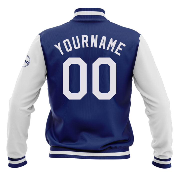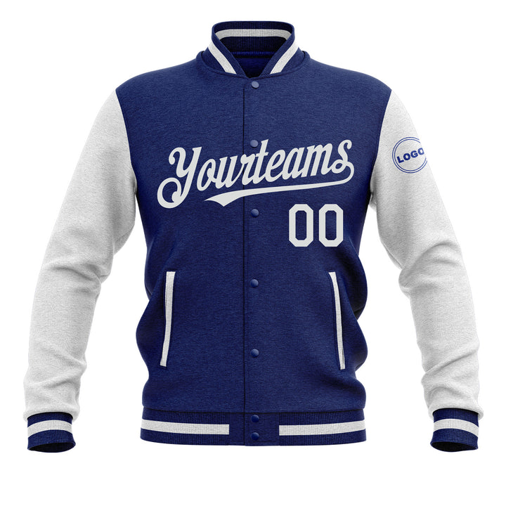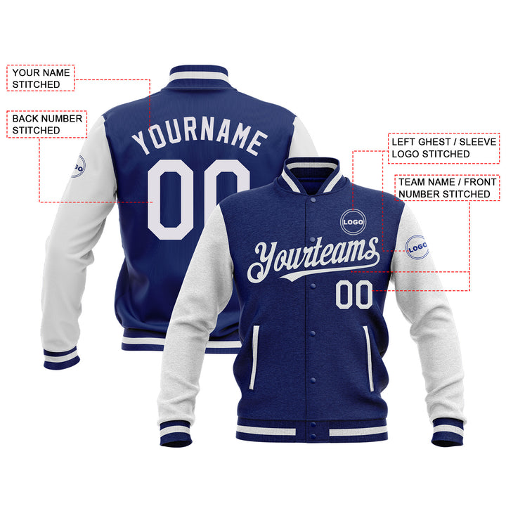 Custom Royal White Classic Style Two Tone Bomber Varsity Letterman Embroidered Jacket