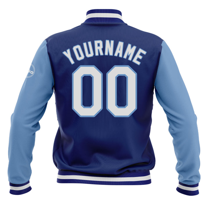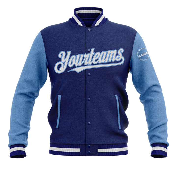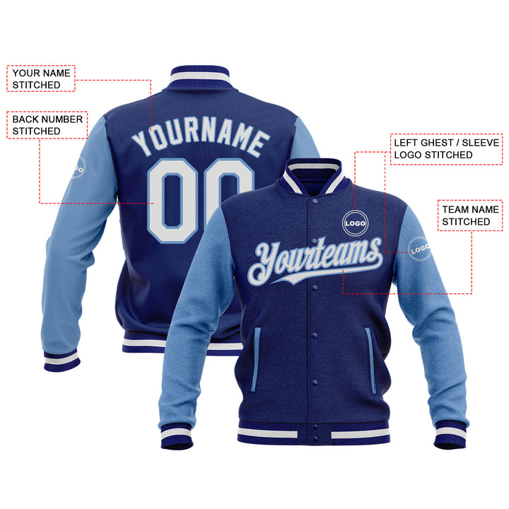 Custom Royal White-Light Blue Two Tone Bomber Varsity Letterman Embroidered Jacket