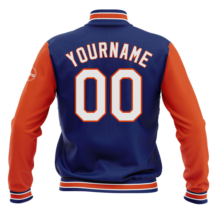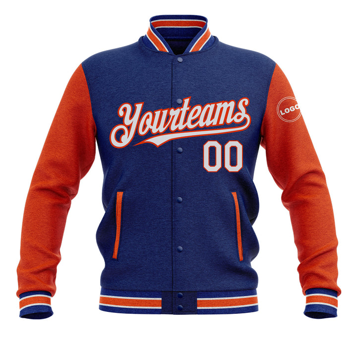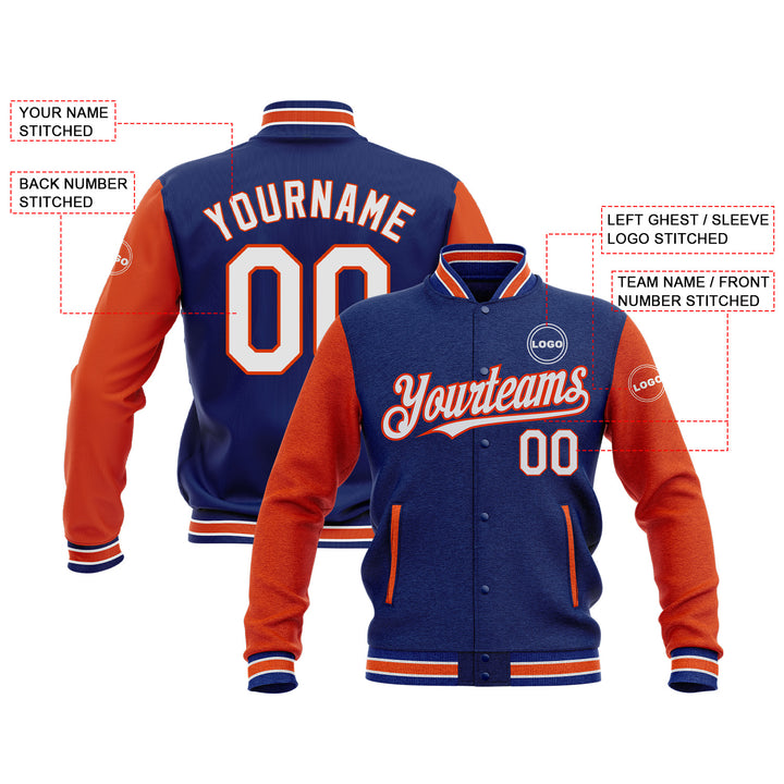 Custom Royal White-Orange Classic Style Two Tone Bomber Varsity Letterman Embroidered Jacket