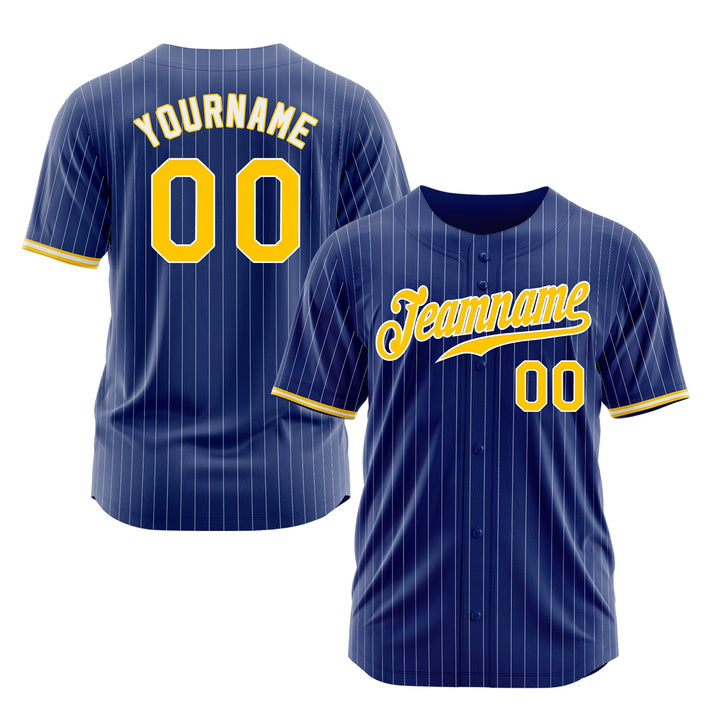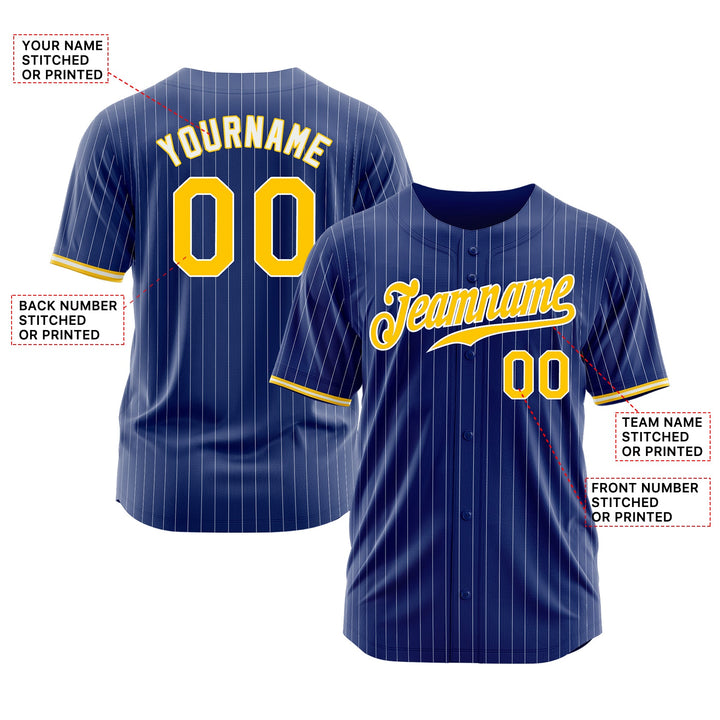 Custom Royal White Pinstripe Gold-White Classic Style Authentic Sports Baseball Jersey