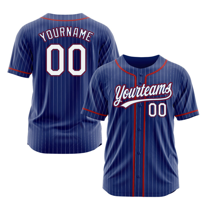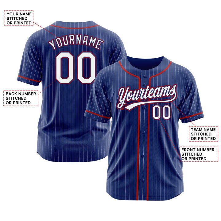 Custom Royal White Pinstripe Red Classic Style Authentic Sports Baseball Jersey