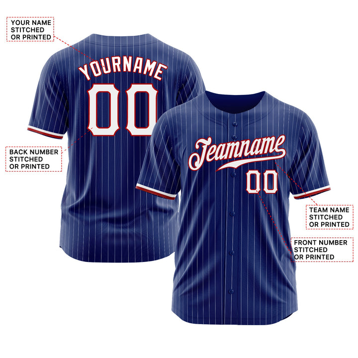 Custom Royal White Pinstripe White-Red Classic Style Authentic Sports Baseball Jersey