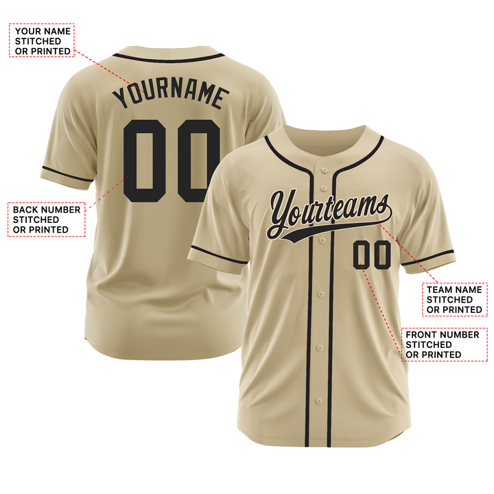 Custom Sand Black Classic Style Authentic Sports Baseball Jersey