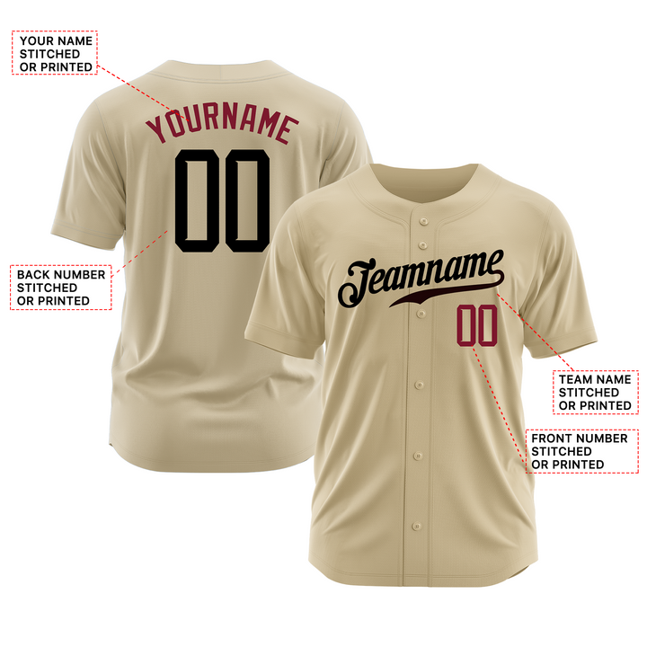 Custom Sand Black-Crimson Classic Style Authentic Sports Baseball Jersey