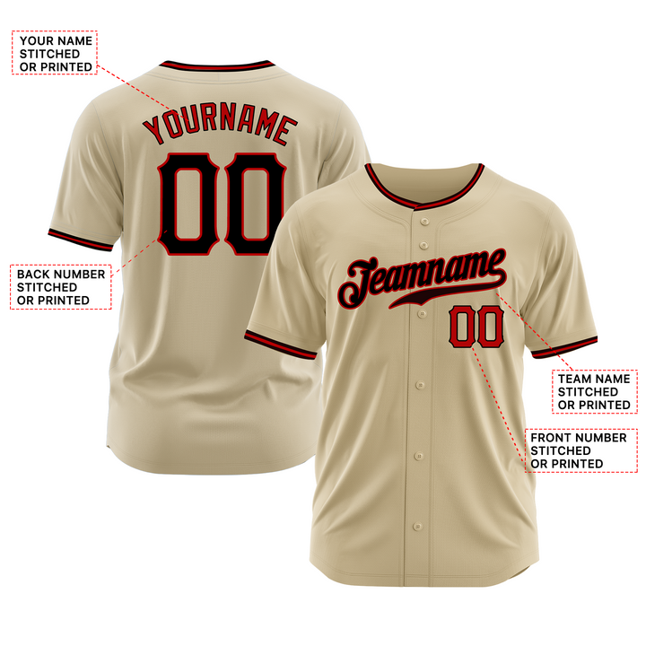 Custom Sand Black-Red Classic Style Authentic Sports Baseball Jersey