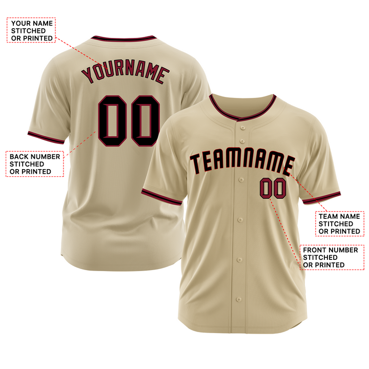 Custom Sand Crimson-Black Classic Style Authentic Sports Baseball Jersey