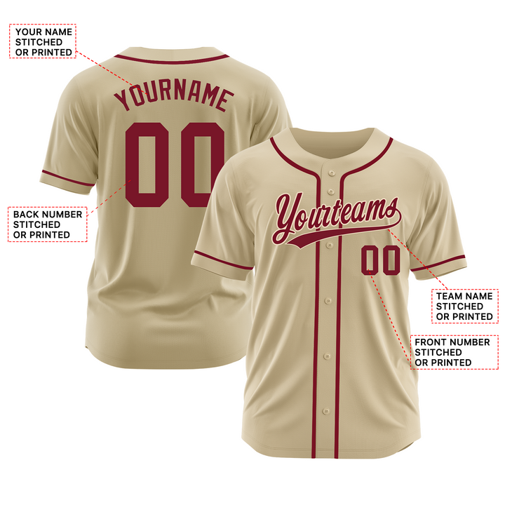 Custom Sand Crimson Classic Style Authentic Sports Baseball Jersey