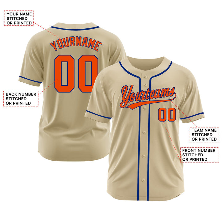 Custom Sand Orange-Royal Classic Style Authentic Sports Baseball Jersey