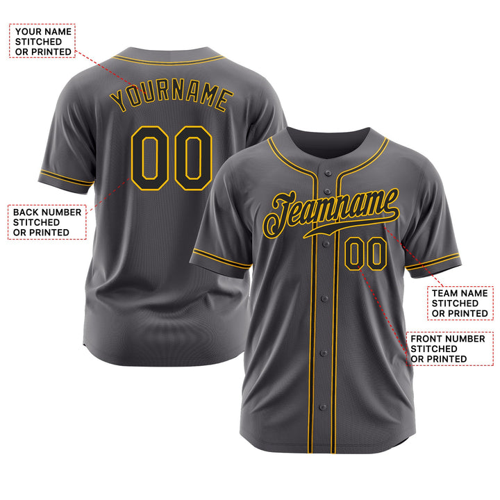 Custom Steel Gray Black-Gold Classic Style Authentic Sports Baseball Jersey