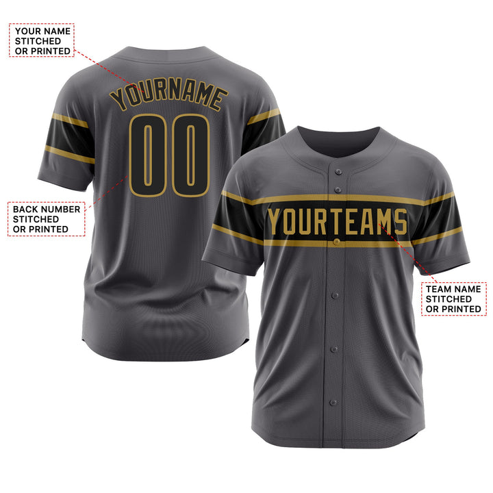 Custom Steel Gray Black-Old Gold Classic Style Authentic Sports Baseball Jersey
