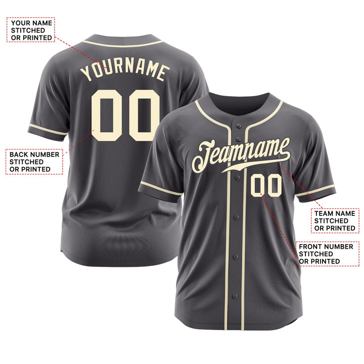 Custom Steel Gray Cream Classic Style Authentic Sports Baseball Jersey