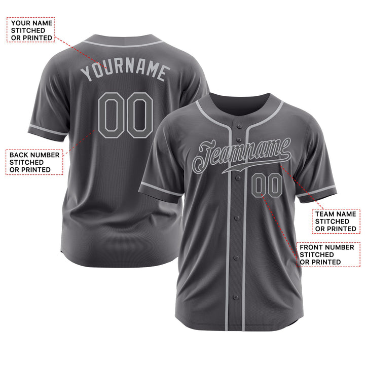 Custom Steel Gray Gray Classic Style Authentic Sports Baseball Jersey