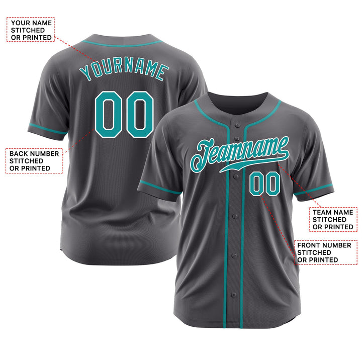 Custom Steel Gray Teal-White Classic Style Authentic Sports Baseball Jersey