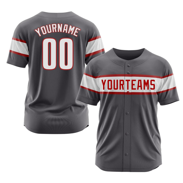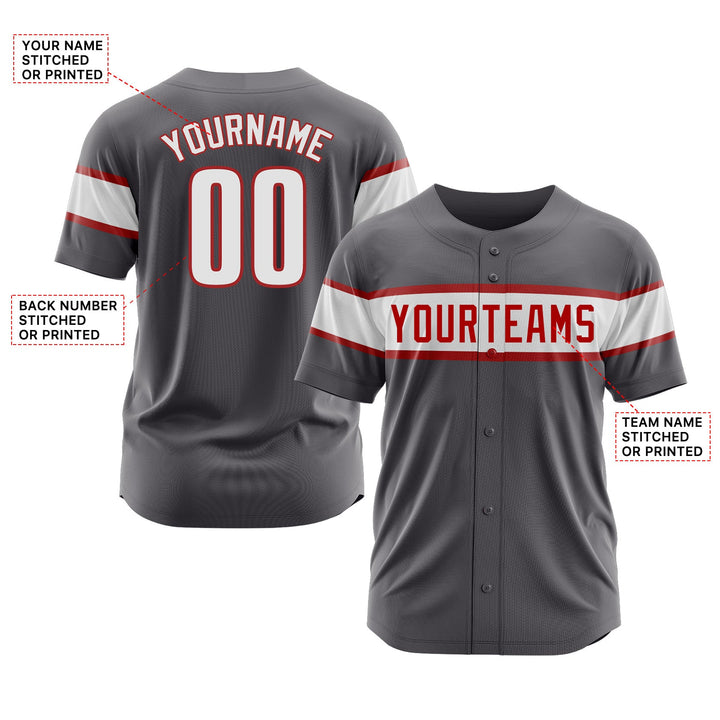 Custom Steel Gray White-Red Classic Style Authentic Sports Baseball Jersey