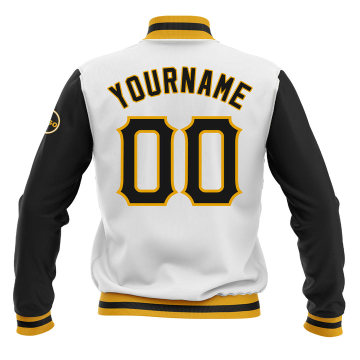 Custom White Black-Gold Classic Style Two Tone Bomber Varsity Letterman Embroidered Jacket