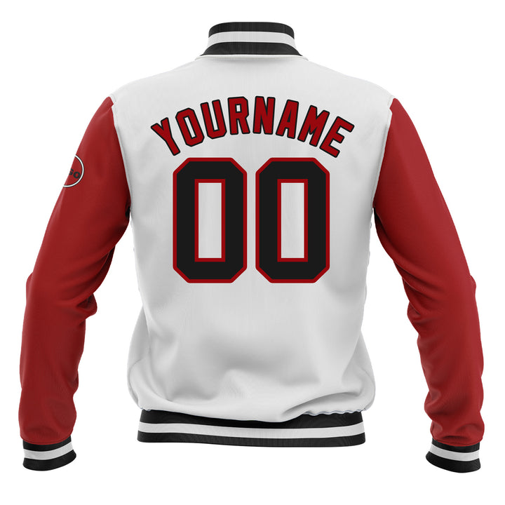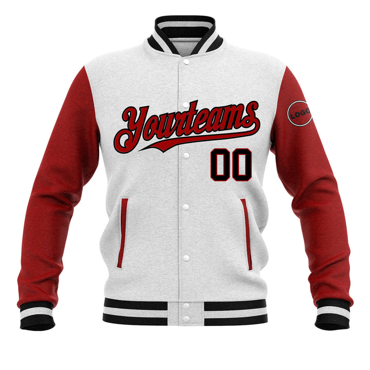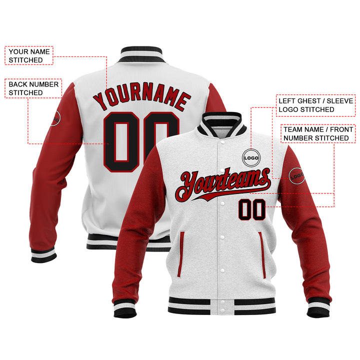 Custom White Black-Red Classic Style Two Tone Bomber Varsity Letterman Embroidered Jacket