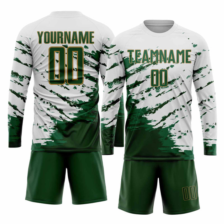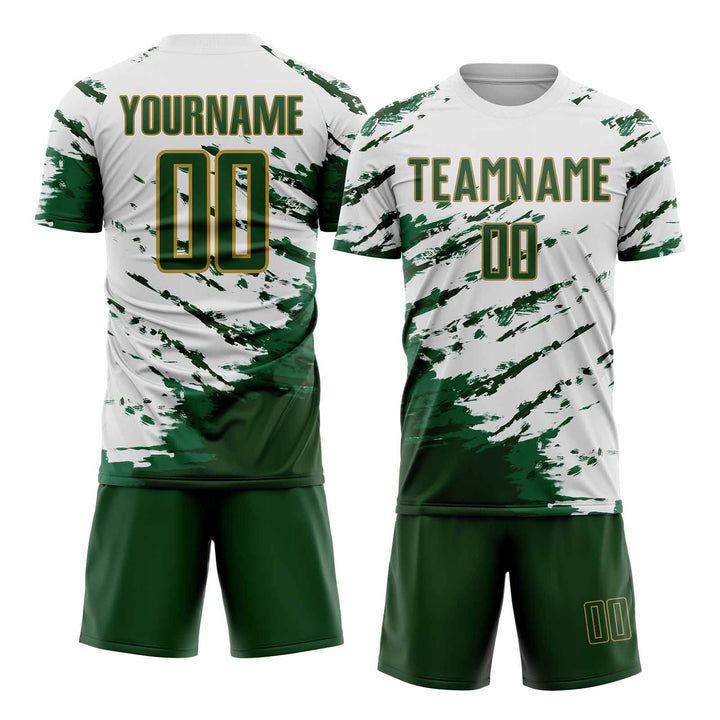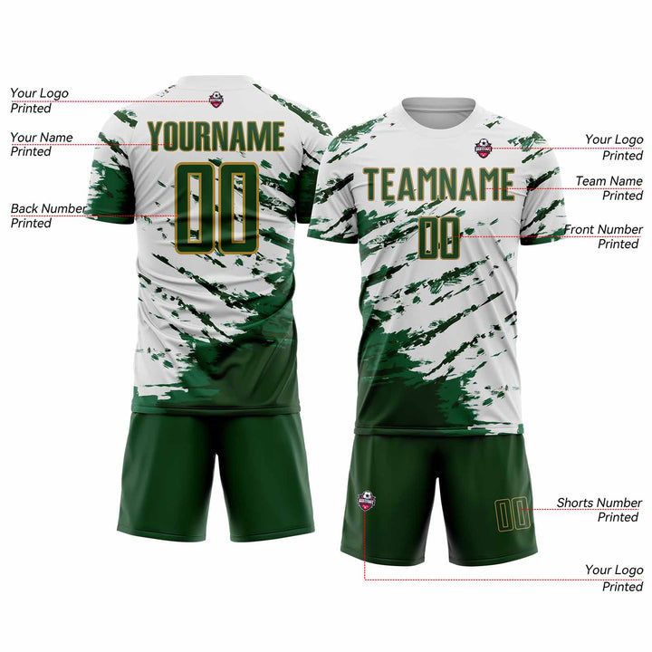 Custom White Green Kelly Green-Gold Abstract Fragment Art Splash Classic Uniform Training Sets Soccer Jersey For Adults/Kids