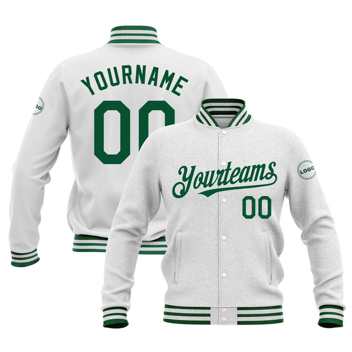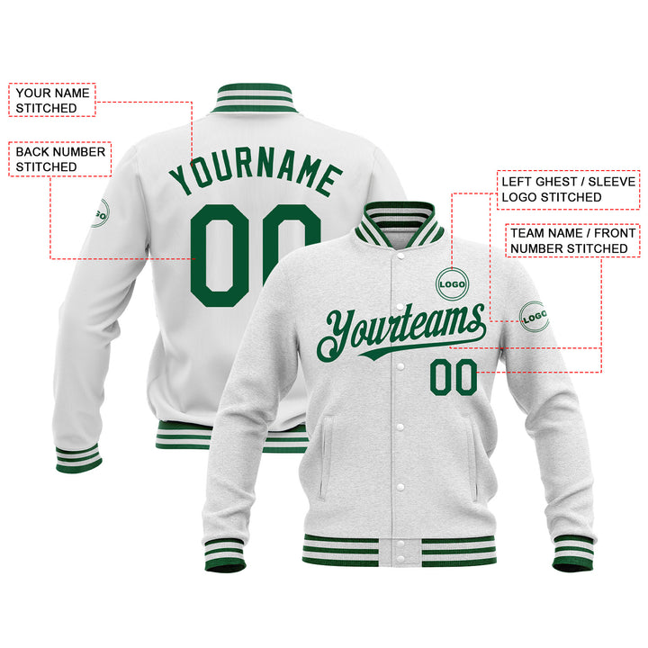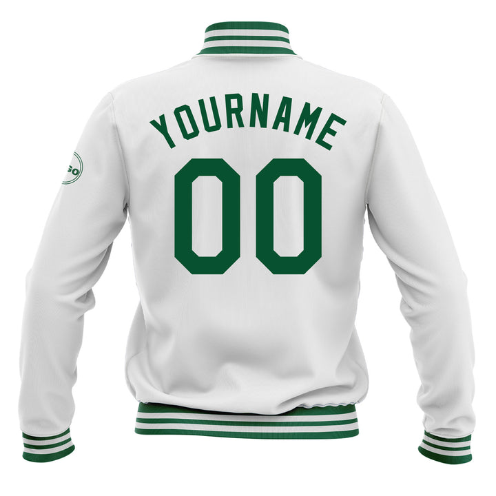 Custom White Kelly Green Classic Style Bomber Varsity Letterman Embroidered Jacket