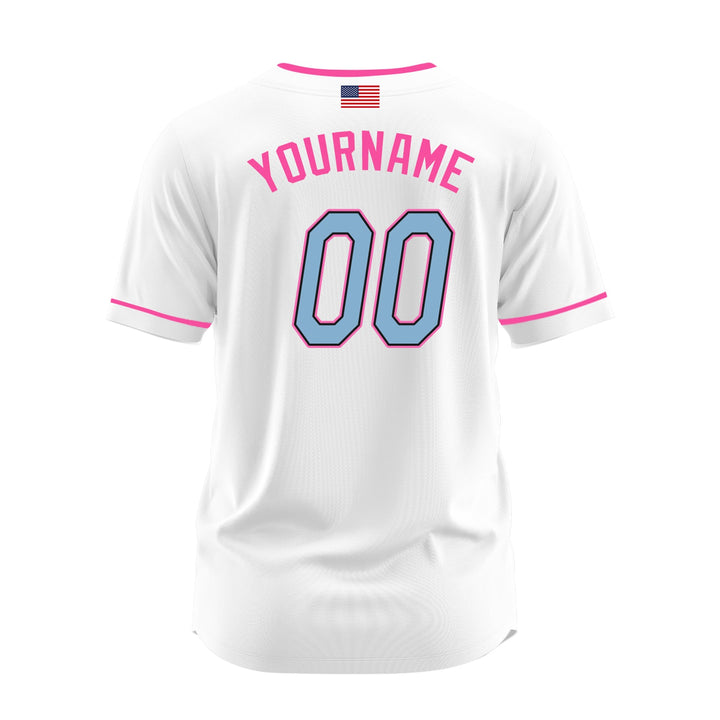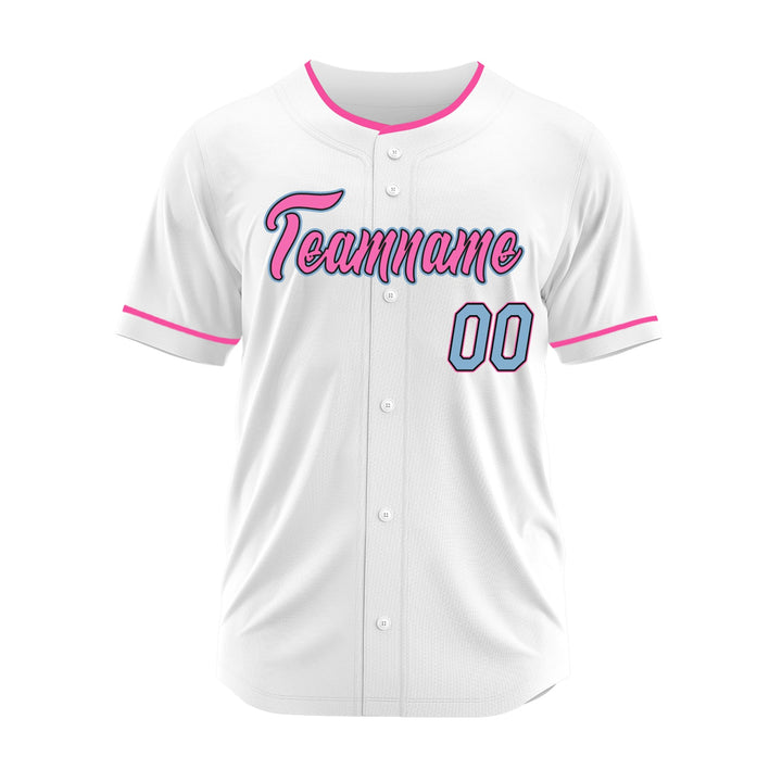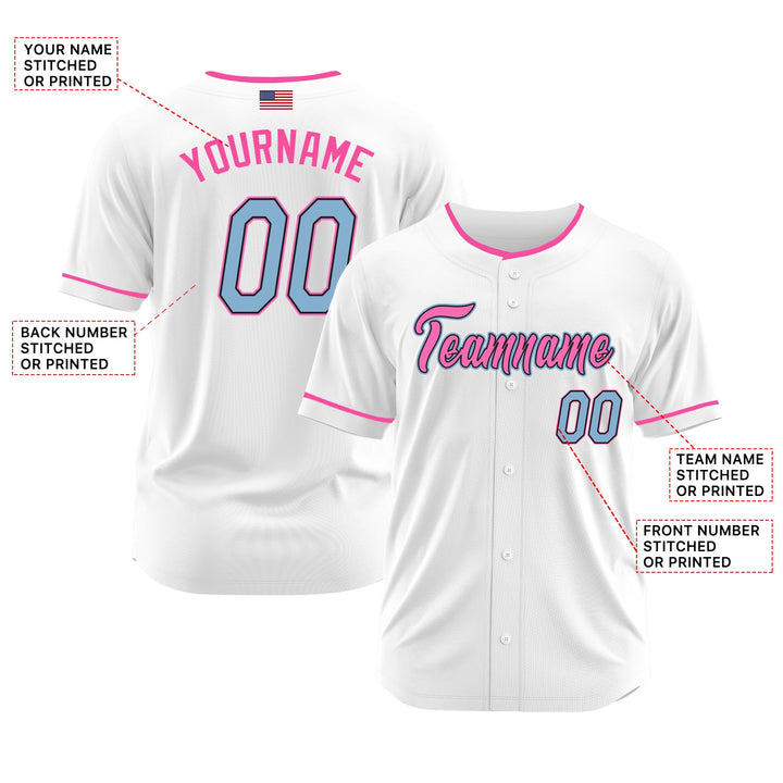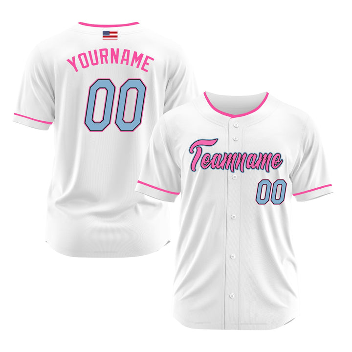 Custom White Light Blue-Pink Classic Style Authentic Sports Baseball Jersey