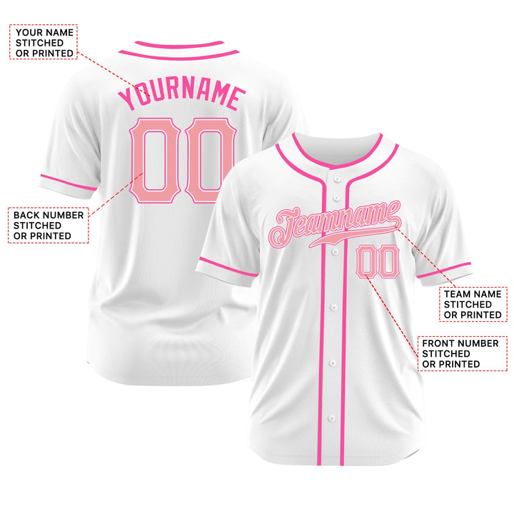 Custom White Medium Pink-Pink Classic Style Authentic Sports Baseball Jersey