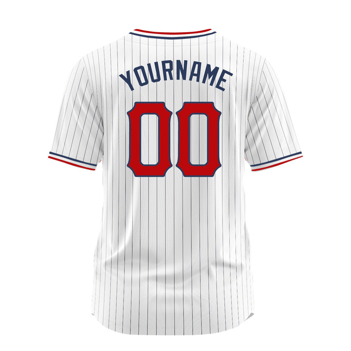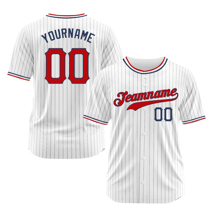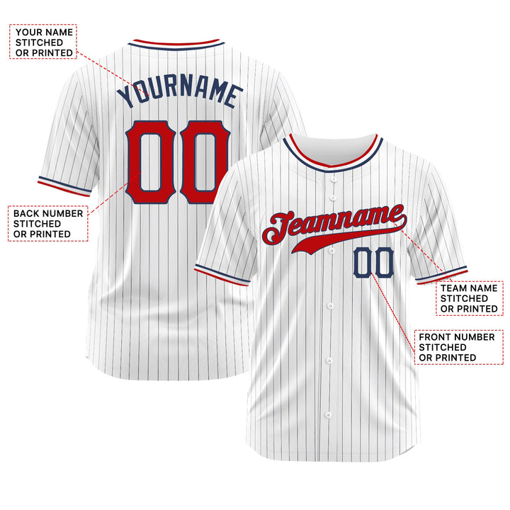 Custom White Navy Pinstripe Red-Navy Classic Style Authentic Sports Baseball Jersey