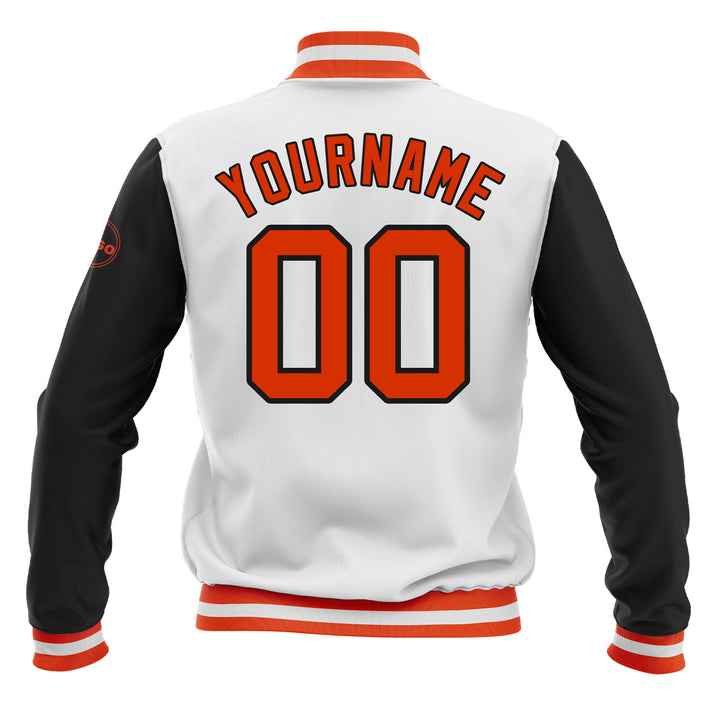 Custom White Orange-Black Classic Style Two Tone Bomber Varsity Letterman Embroidered Jacket