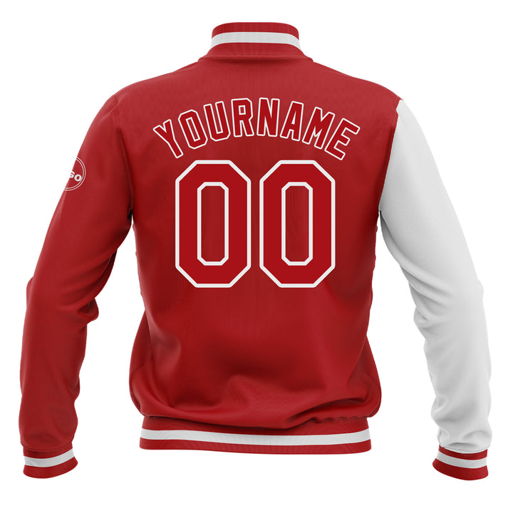 Custom White Red Classic Style Split Fashion Bomber Varsity Letterman Embroidered Jacket