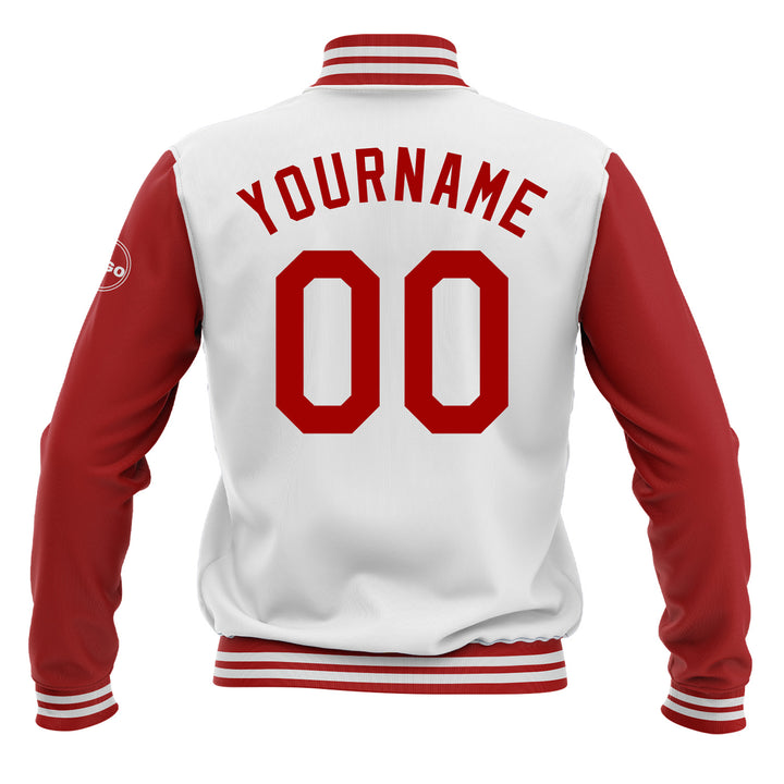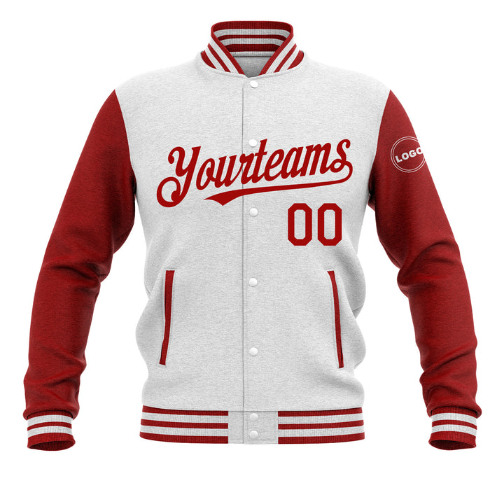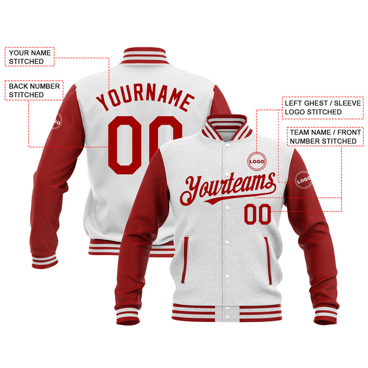 Custom White Red Classic Style Two Tone Bomber Varsity Letterman Embroidered Jacket