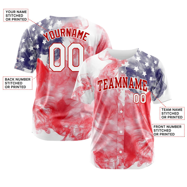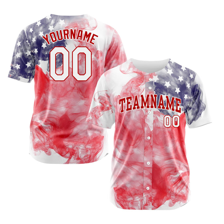 Custom White White-Red 3D American Flag Classic Style Authentic Sports Baseball Jersey