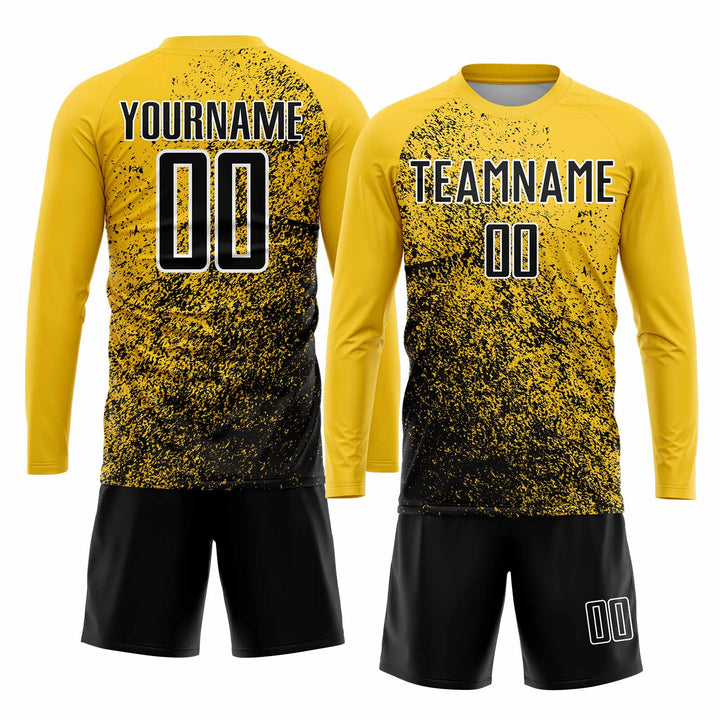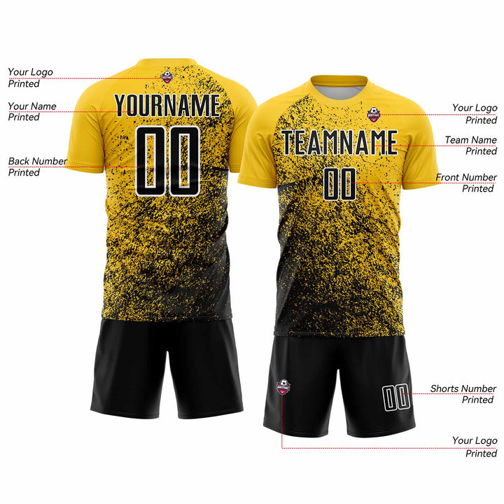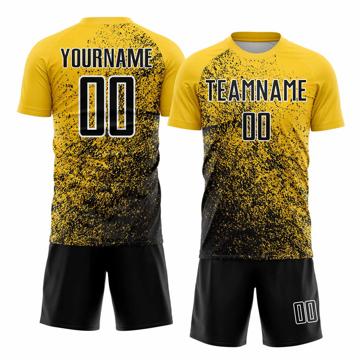 Custom Yellow Black-White Abstract Fragment Art Classic Uniform Training Sets Soccer Jersey For Adults/Kids